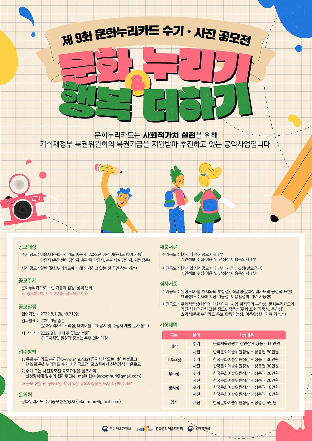 제9회 문화누리카드 수기·사진 공모전 문화 누리기, 행복 더하기개최 안내