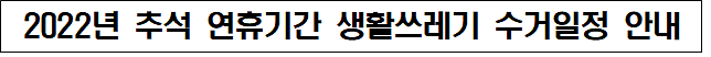우리 구의 추석 연휴기간 동안 생활쓰레기 수거일정을 다음과 같이 안내하오니 쾌적한 환경을 유지할 수 있도록 주민 여러분의 협조 부탁드립니다. |