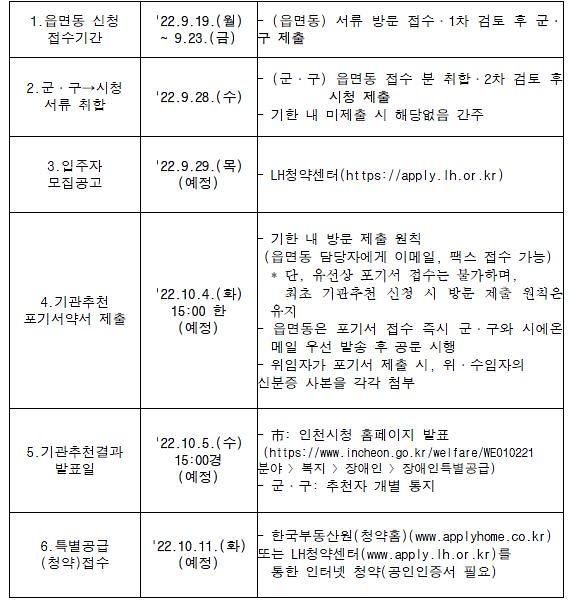 ※ 기관추천결과 발표일이 동일한 경우, 모집 중인 타 특별공급과 중복신청 불가함.