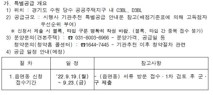 ※ 기관추천결과 발표일이 동일한 경우, 모집 중인 타 특별공급과 중복신청 불가함.