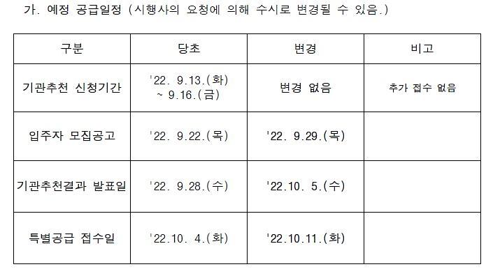 ○ 건설사의 사정으로 입주자 모집공고일이 최초 인천시 홈페이지에 안내한 입주자