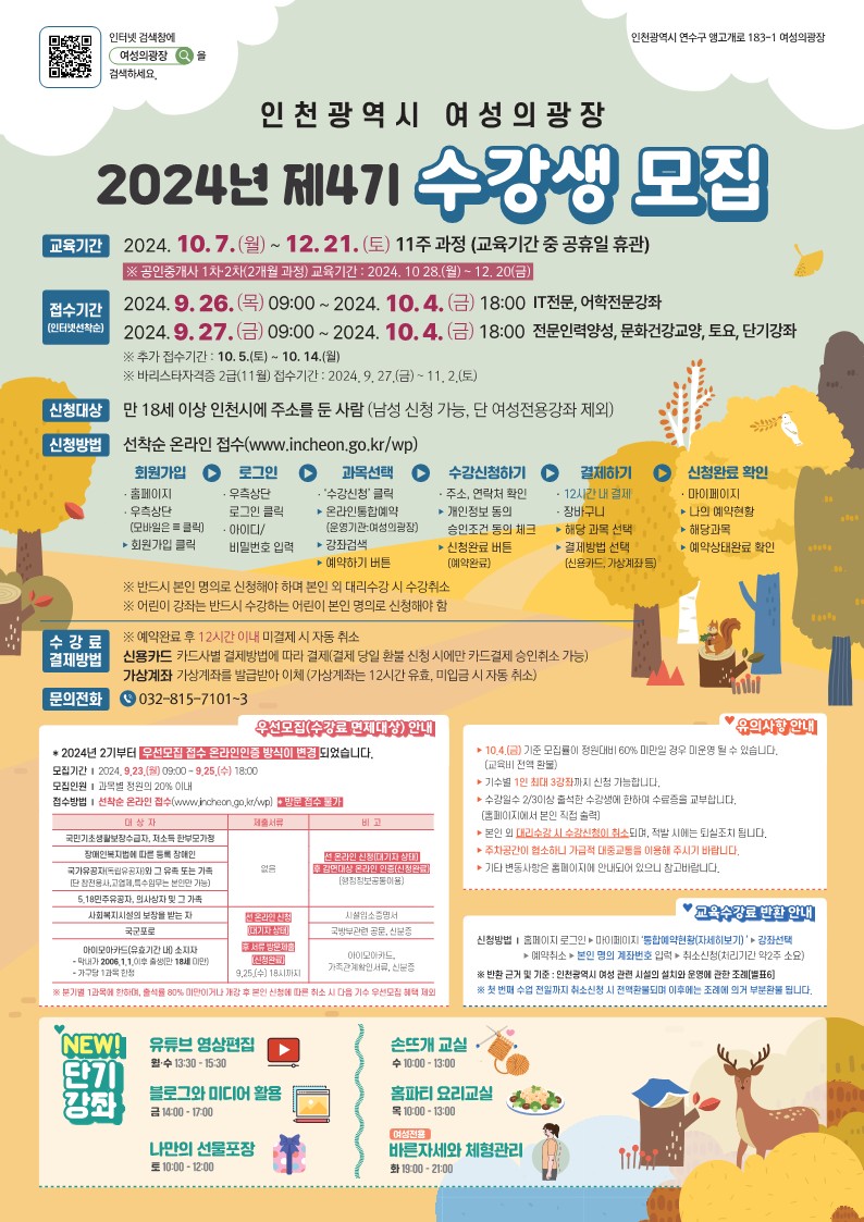 여성의광장 2024. 제4기 교육수강생 모집 안내