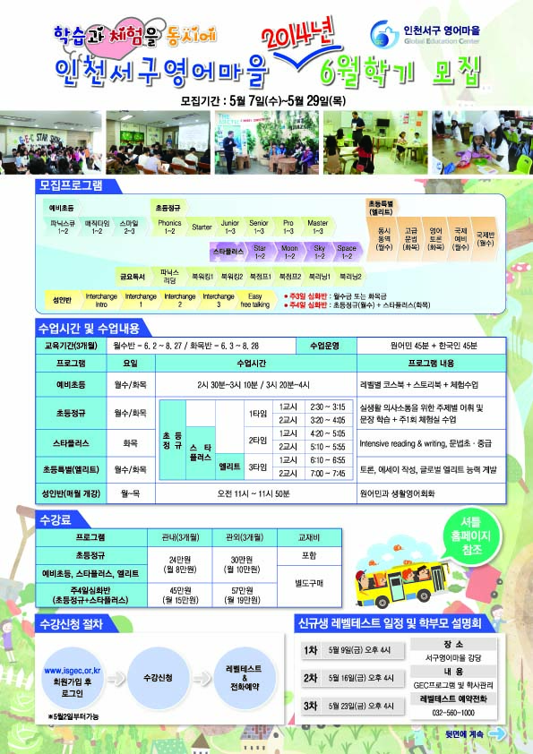 인천서구영어마을에서 제32기 수강생을 모집하고 있습니다.