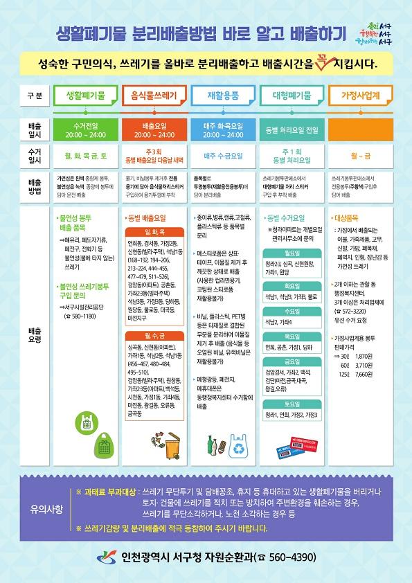 ○ 재활용 쓰레기는 매주 수요일과 금요일수거하며 배출시간은 화/목 저녁8시 ~ 밤12시까지 배출하시면 됩니다.