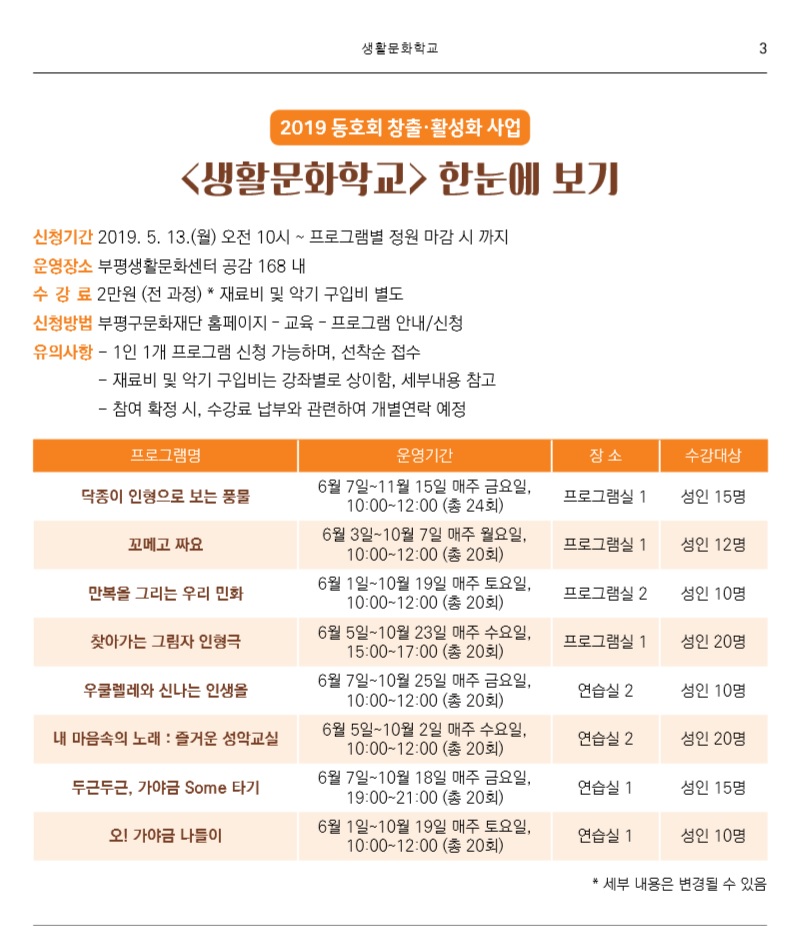 □ 운영장소 : 부평생활문화센터 공감168 내