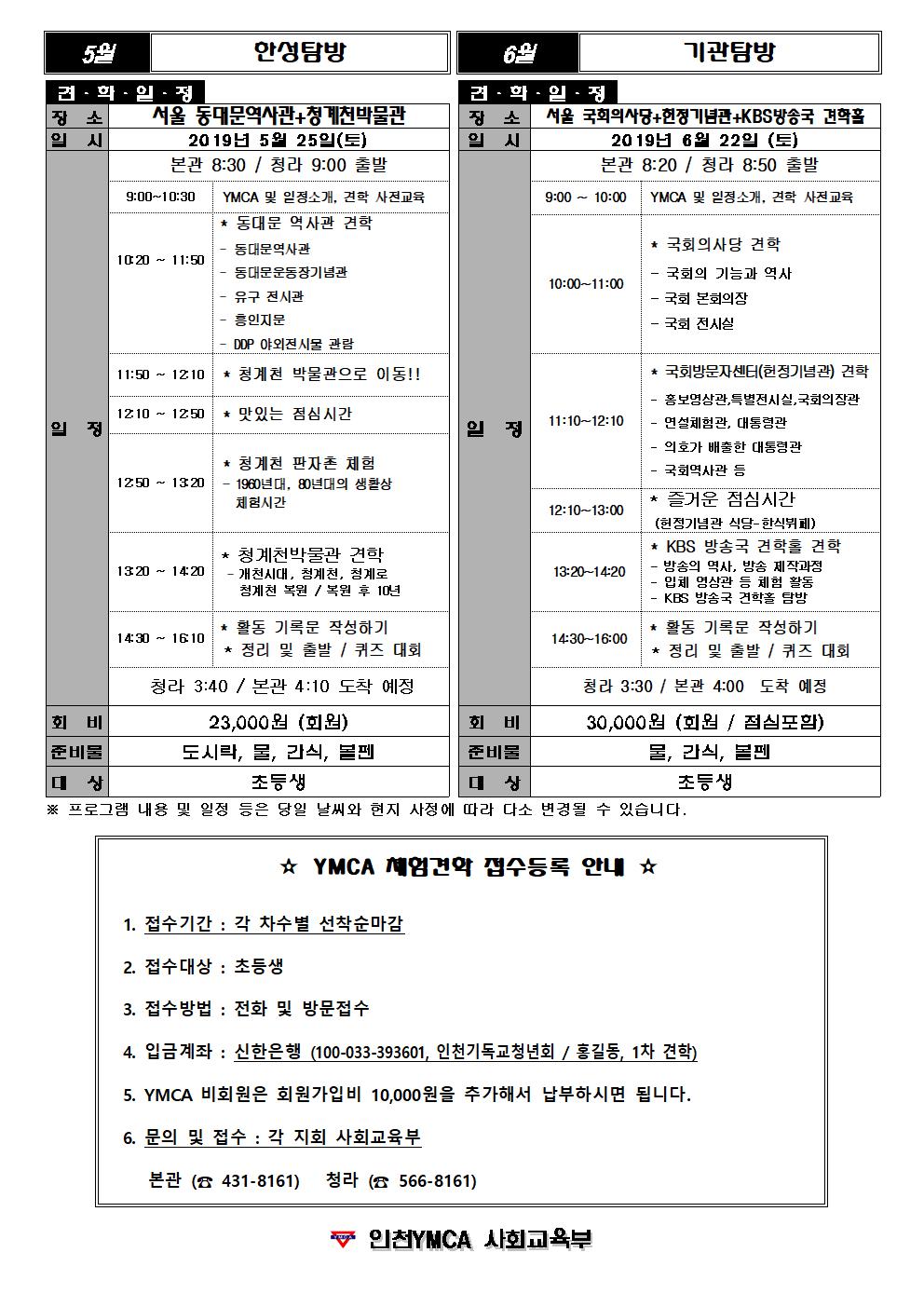 ✫ YMCA 체험견학 접수등록 안내 ✫
