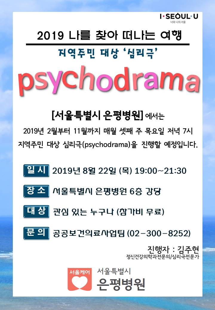 [서울특별시 은평병원]에서 8월 22일(목) 저녁 7시에 무료 심리극이 진행됩니다.