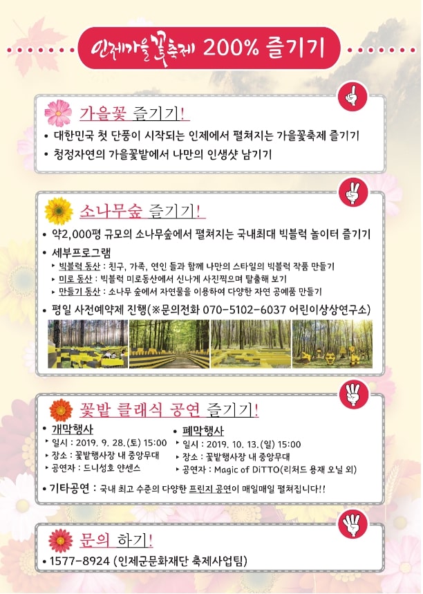 - 대한민국 첫 단풍이 시작되는 인제에서 펼쳐지는 가을꽃축제 즐기기