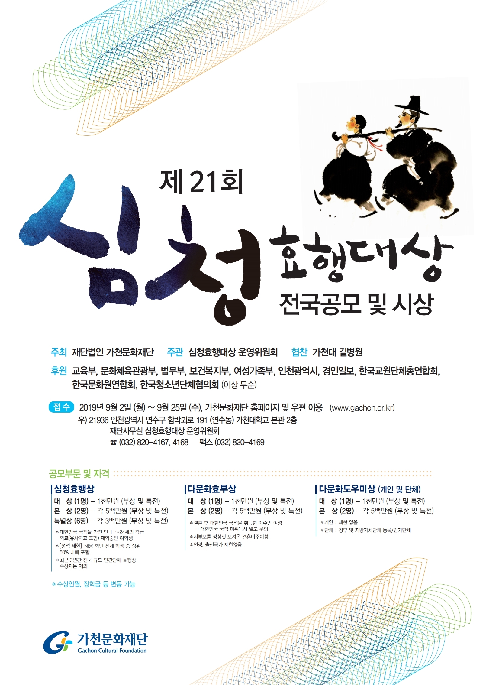 다. 접수 : 가천문화재단 홈페이지(http://www.gachon.or.kr/) 또는 우편
