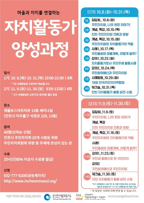 ㅣ신청: 032-777-8200(공동체자치)