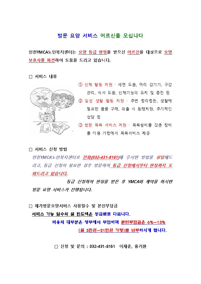 인천 YMCA 방문 요양 서비스 어르신을 모십니다