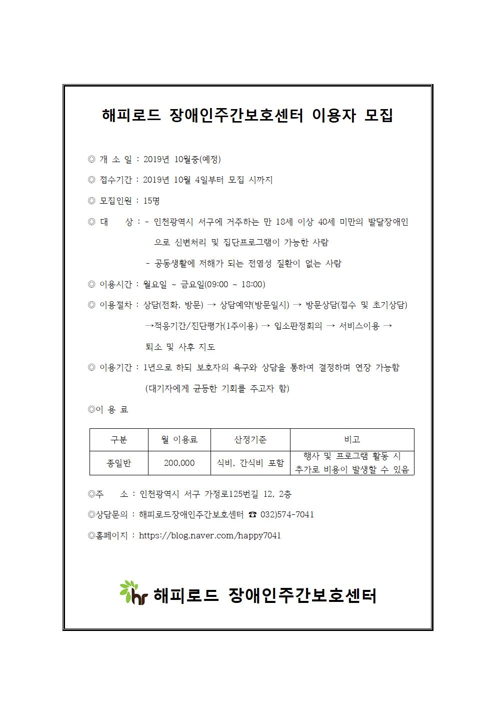 해피로드 장애인주간보호센터 이용자 모집