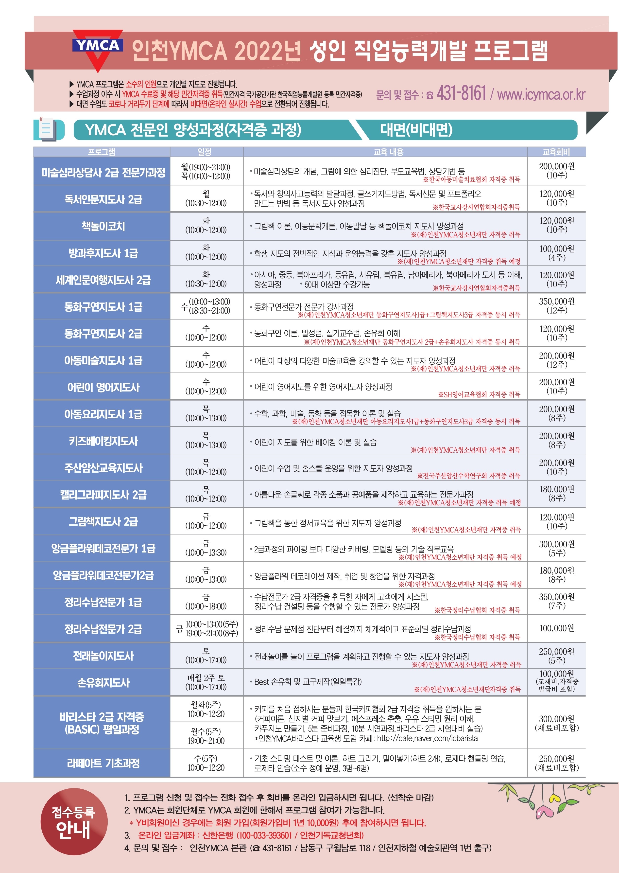 〈 인천YMCA 2022년 평생교육 프로그램 안내 〉
