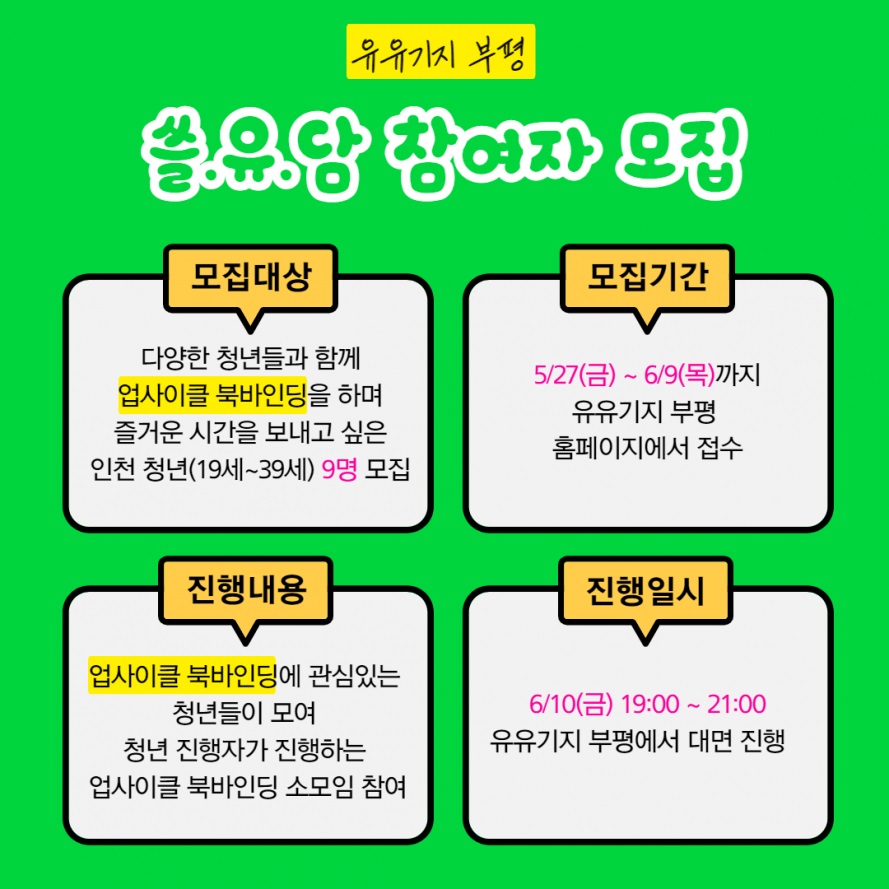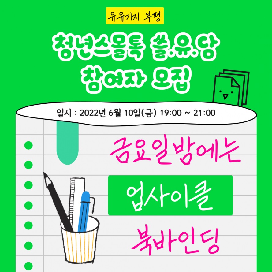 지금 바로 유유기지 부평 <청년 스몰톡 "쓸.유.담">에 신청하세요!!
