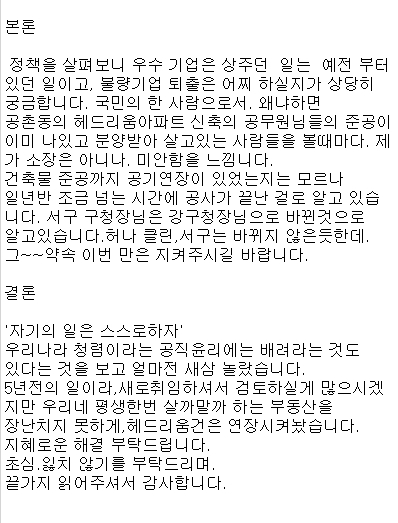 공촌동의 헤드리움아파트 신축의 공무원님들의 준공이 이미 나있고 분양받아 살고있는 사람들을 볼때마다. 제가 소장은 아니나. 미안함을 느낌니다.