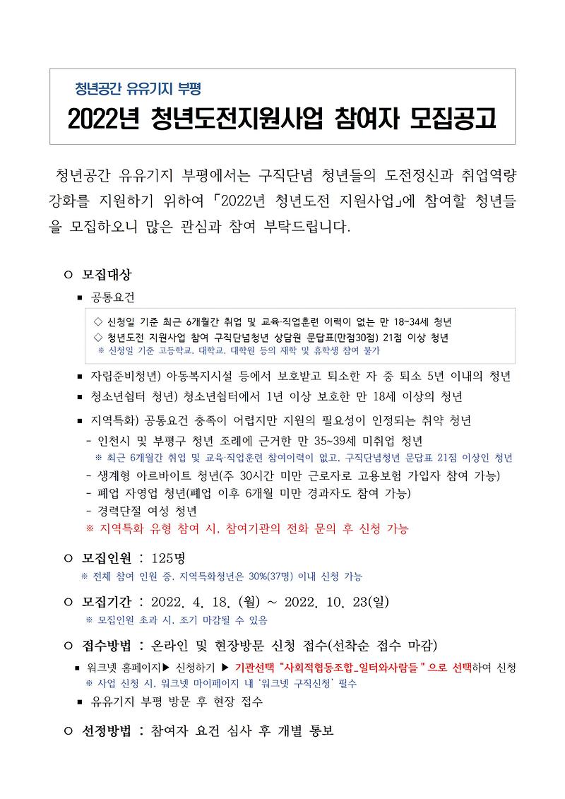 [유유기지부평] 청년도전지원사업 참여자 모집 안내
