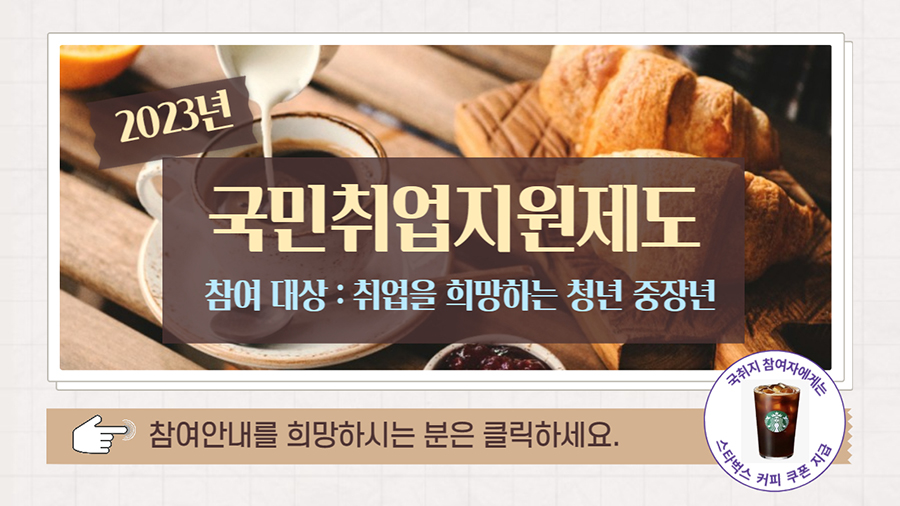 ♥♥[고용노동부]국민취업지원제도 신청안내(참여자께 스벅쿠폰지급)♥♥