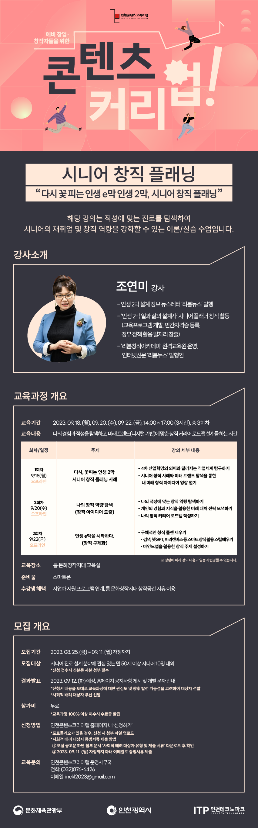 ▶ 교육문의: 인천콘텐츠코리아랩 운영사무국 032-876-6426 / inckl2023@gmail.com