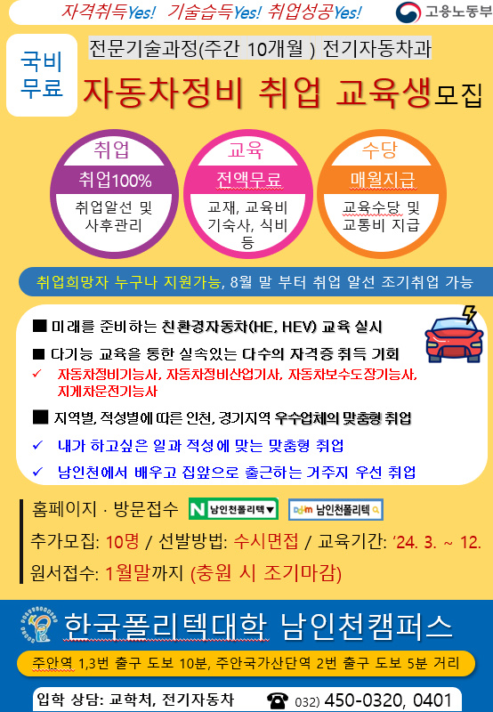 9. 문의 : 교학처 032)450-0320 , 전기자동차과 032)-0401, 0402