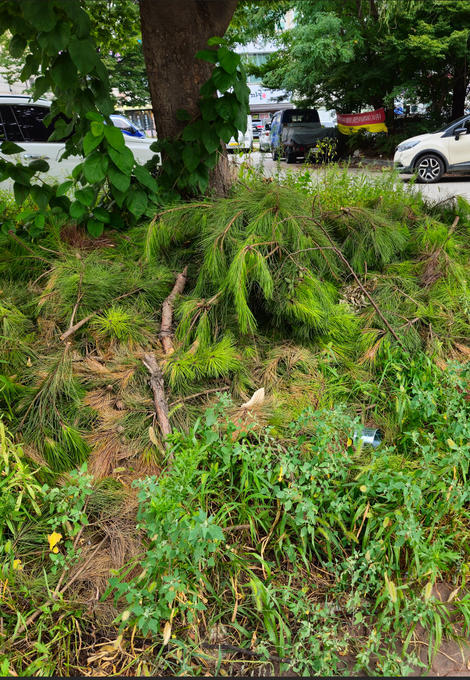 인천 서구 마전동 1019. 이곳은 공영주차장이다. 주변에 큰 나무 3그루와 가운데 몇몇 나무와 구조물이 있다. 누가 봐도 환경 상태가 엉망이다.