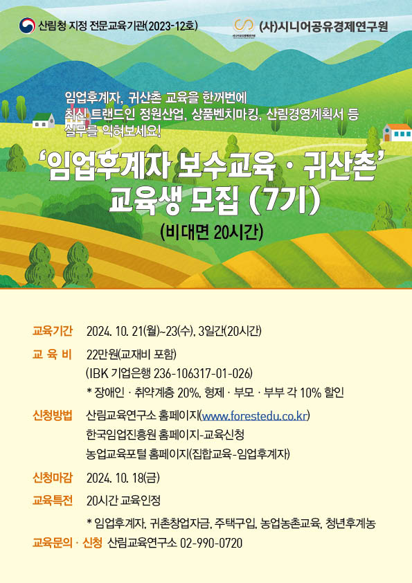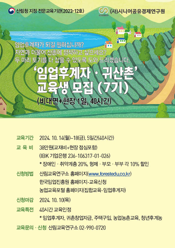 2024년 임업후계자 및 귀산촌 교육 안내(7기)