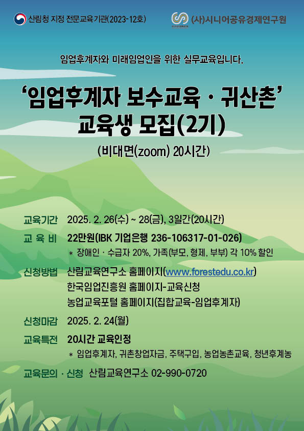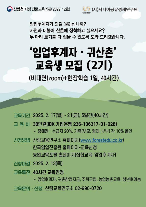 2025년 임업후계자 및 귀산촌 교육 안내(2기)