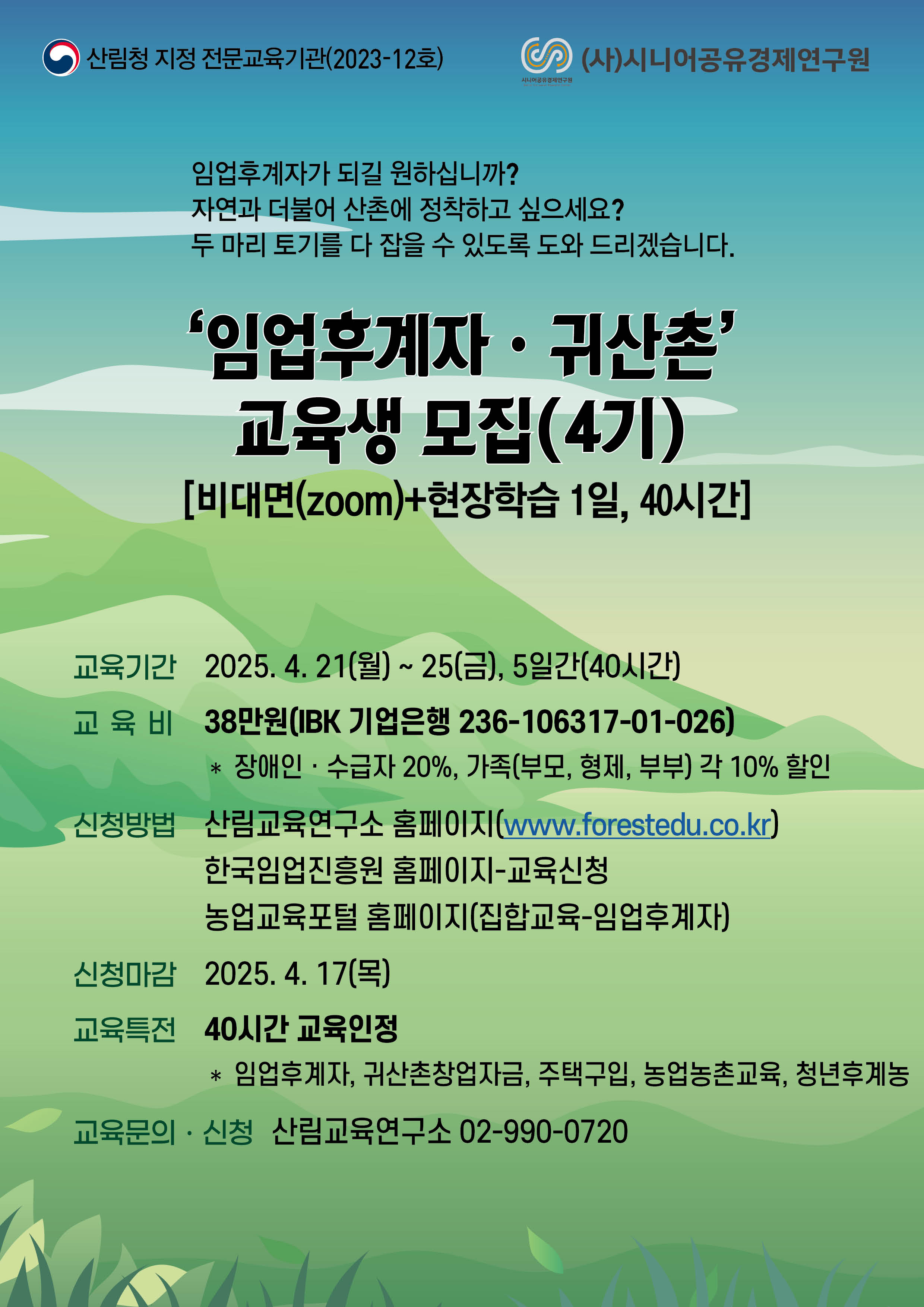 2025년 임업후계자 및 귀산촌 교육 안내(4기)