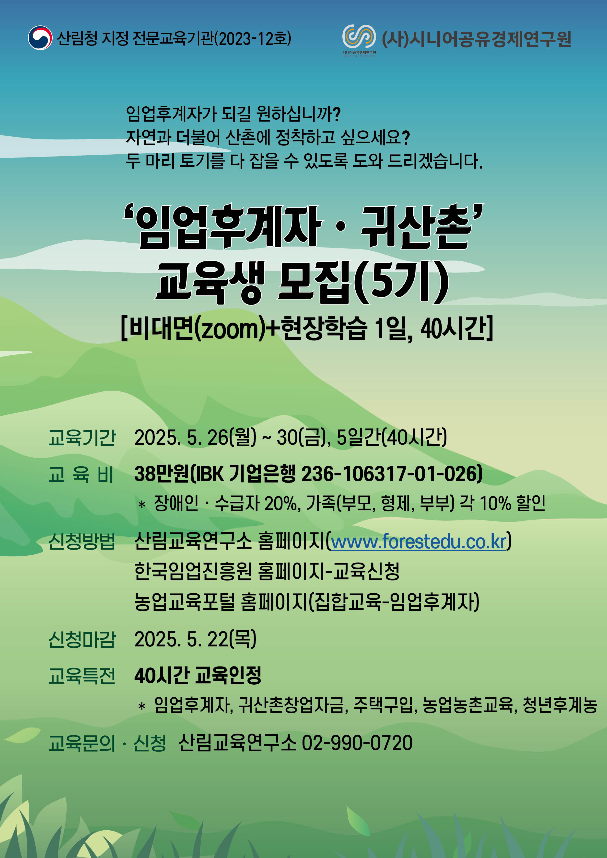 2025년 임업후계자 및 귀산촌 교육 안내(5기)
