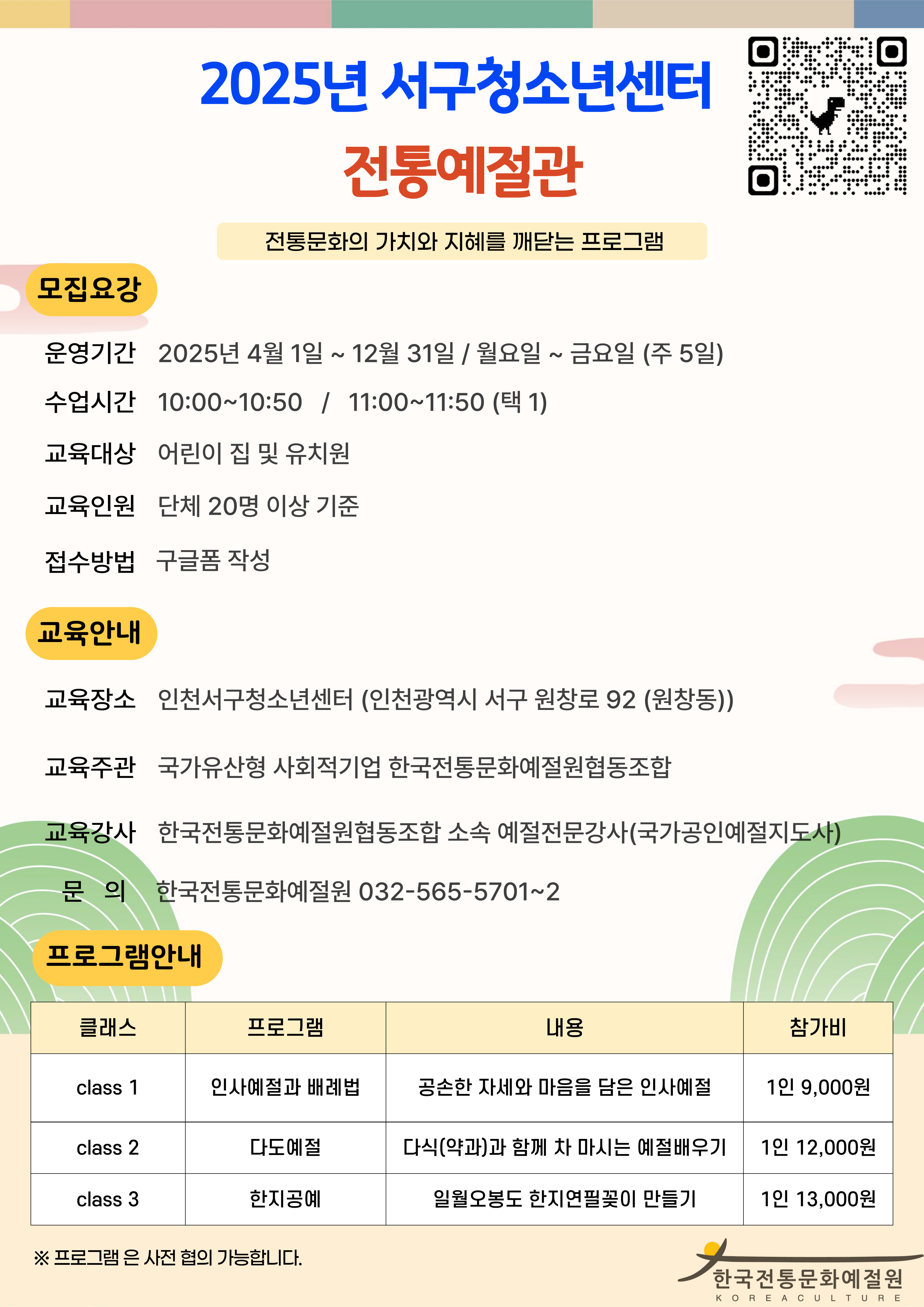 📣 2025 서구청소년센터 전통예절관 전통예절학당 프로그램 안내