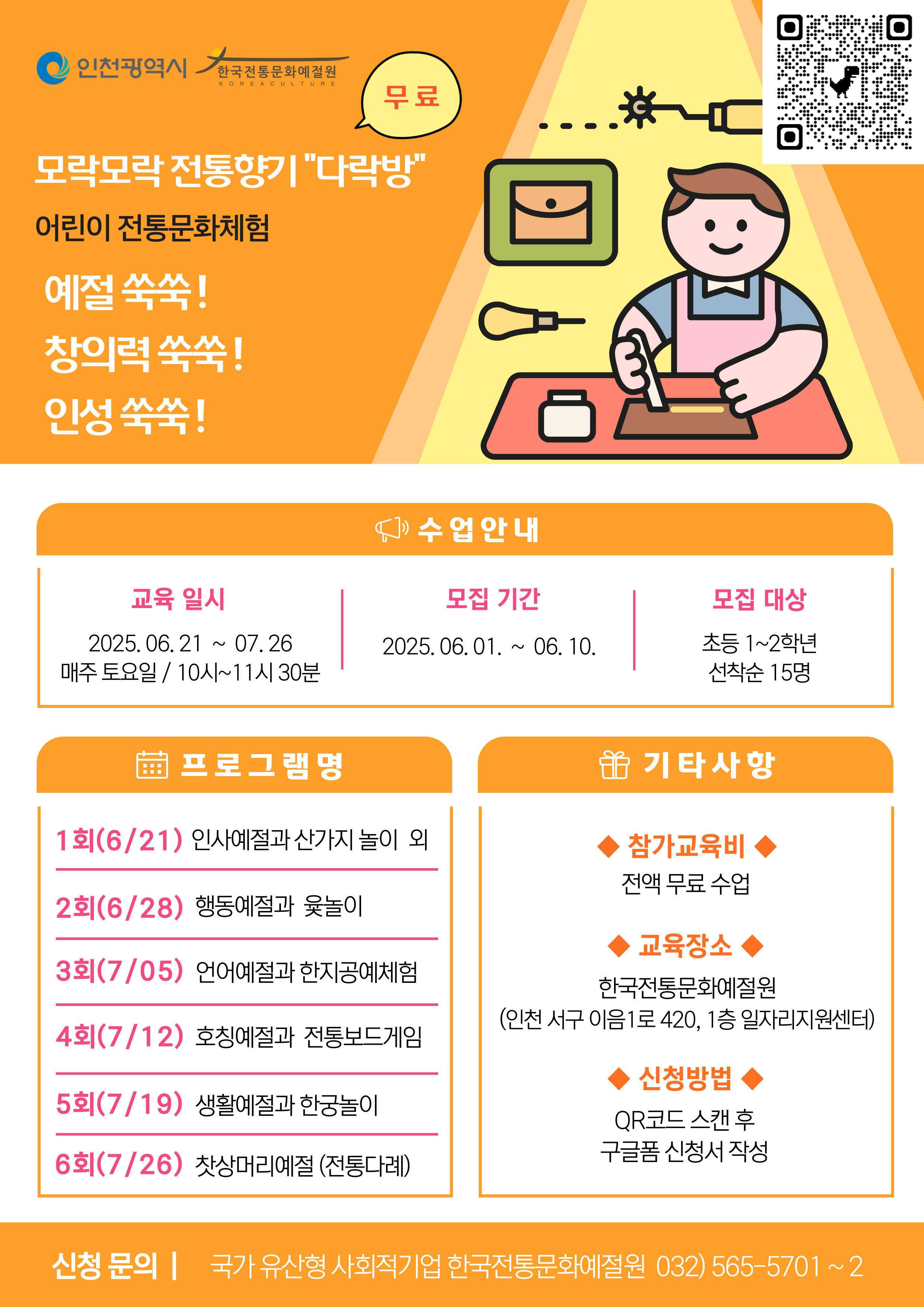 2025 예절 쑥쑥! 창의력 쑥쑥! 인성 쑥쑥! 어린이 전통문화체험 참가어린이 모집