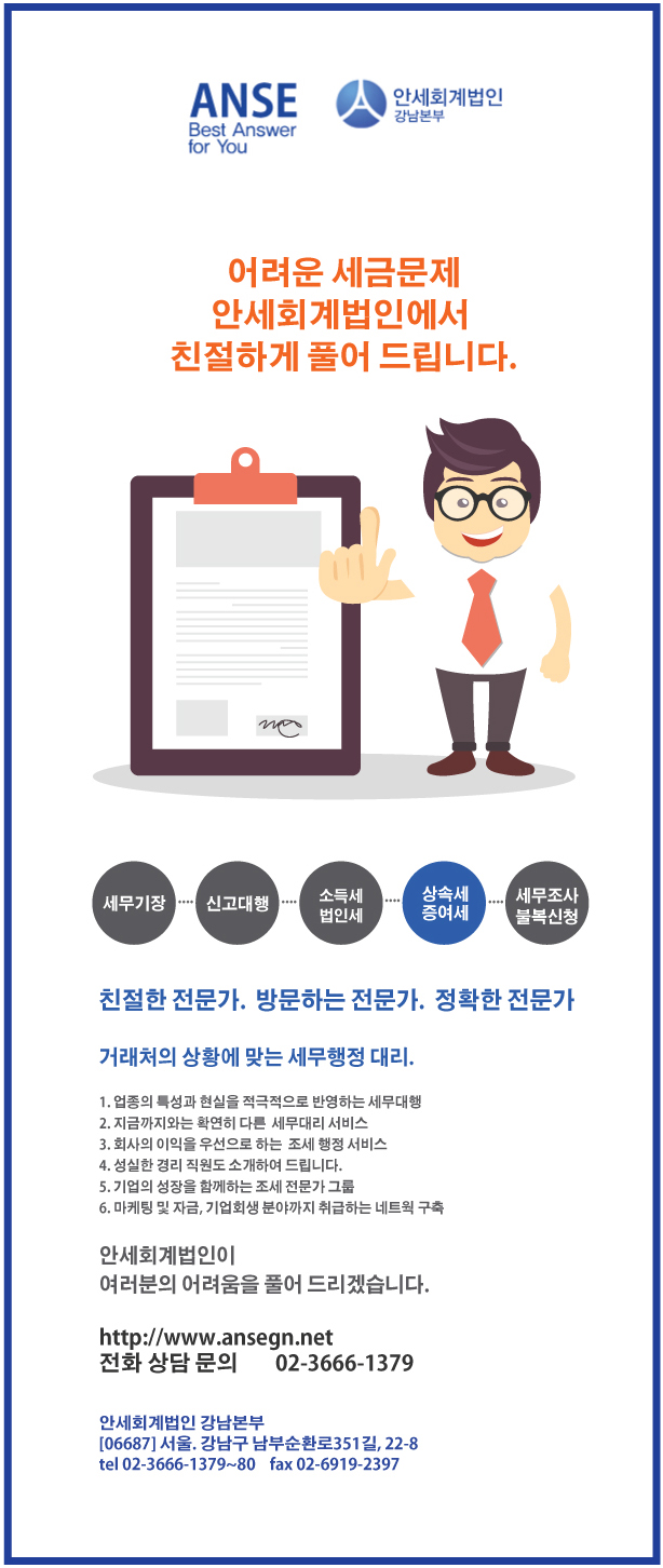 안세회계법인은 선진국형 조세 및 경영컨설팅 서비스를 제공하는 회사입니다.