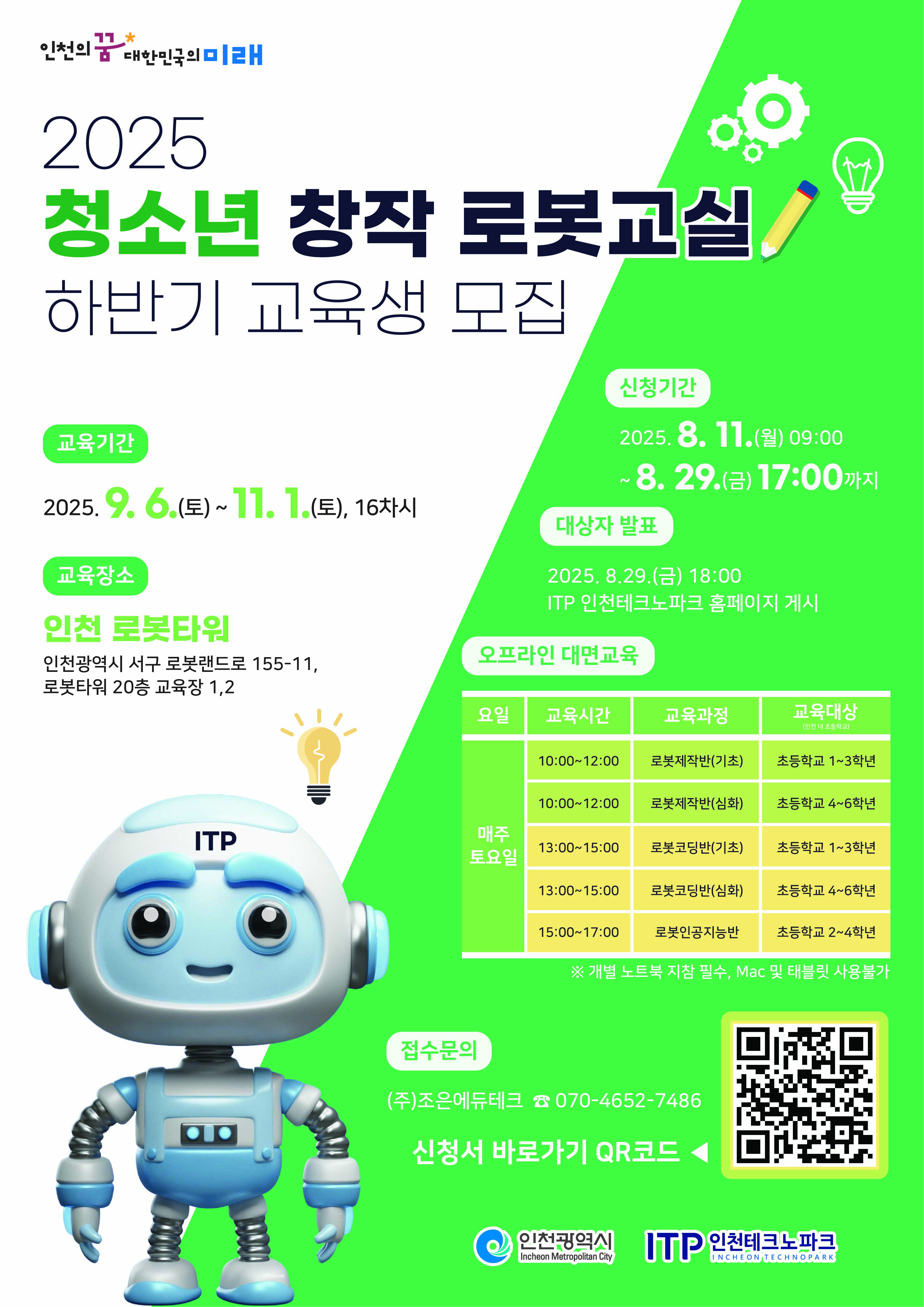 2025년 청소년 창작 로봇교실 하반기 교육생 모집 안내
