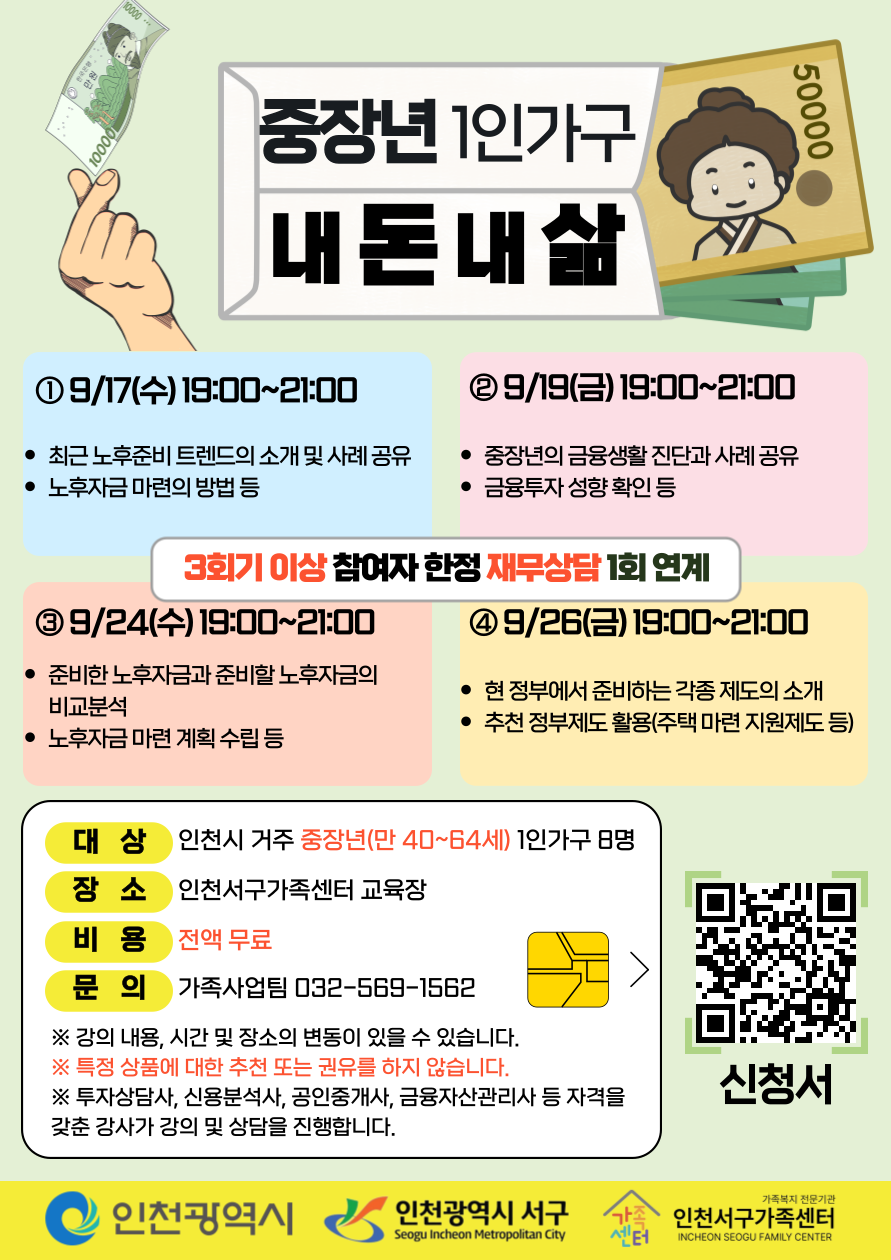 인천서구가족센터 '1인가구 내 돈 내 삶'