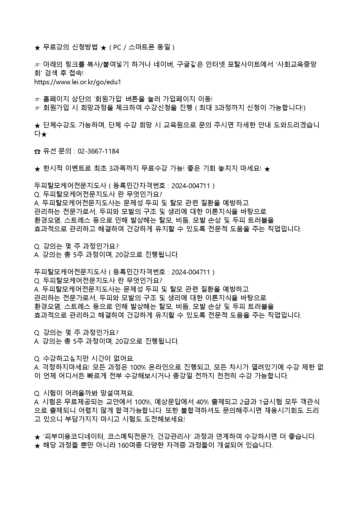 사회교육중앙회의 재능기부로 자격증을 취득해보세요