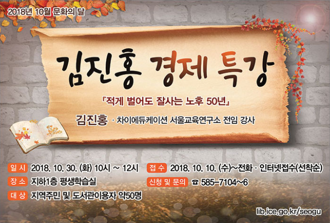 [서구도서관] 10월 문화의 달 특강 안내 및 참가자 모집