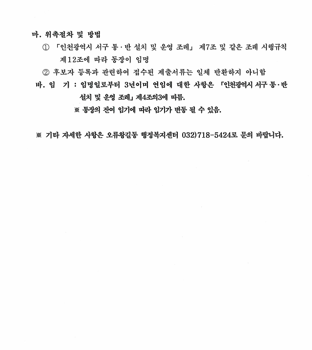 오류왕길동 제3통장 공개모집 재공고