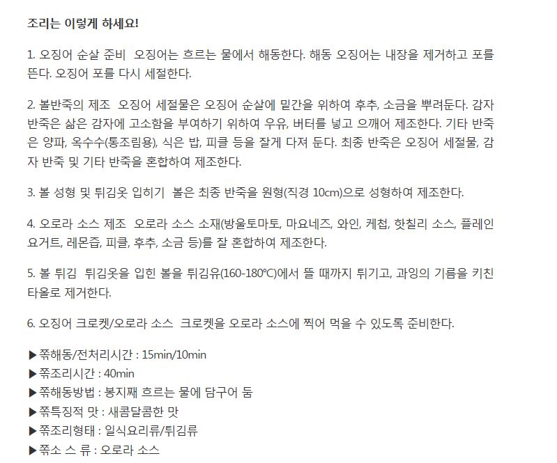 건강 레시피 세부메뉴