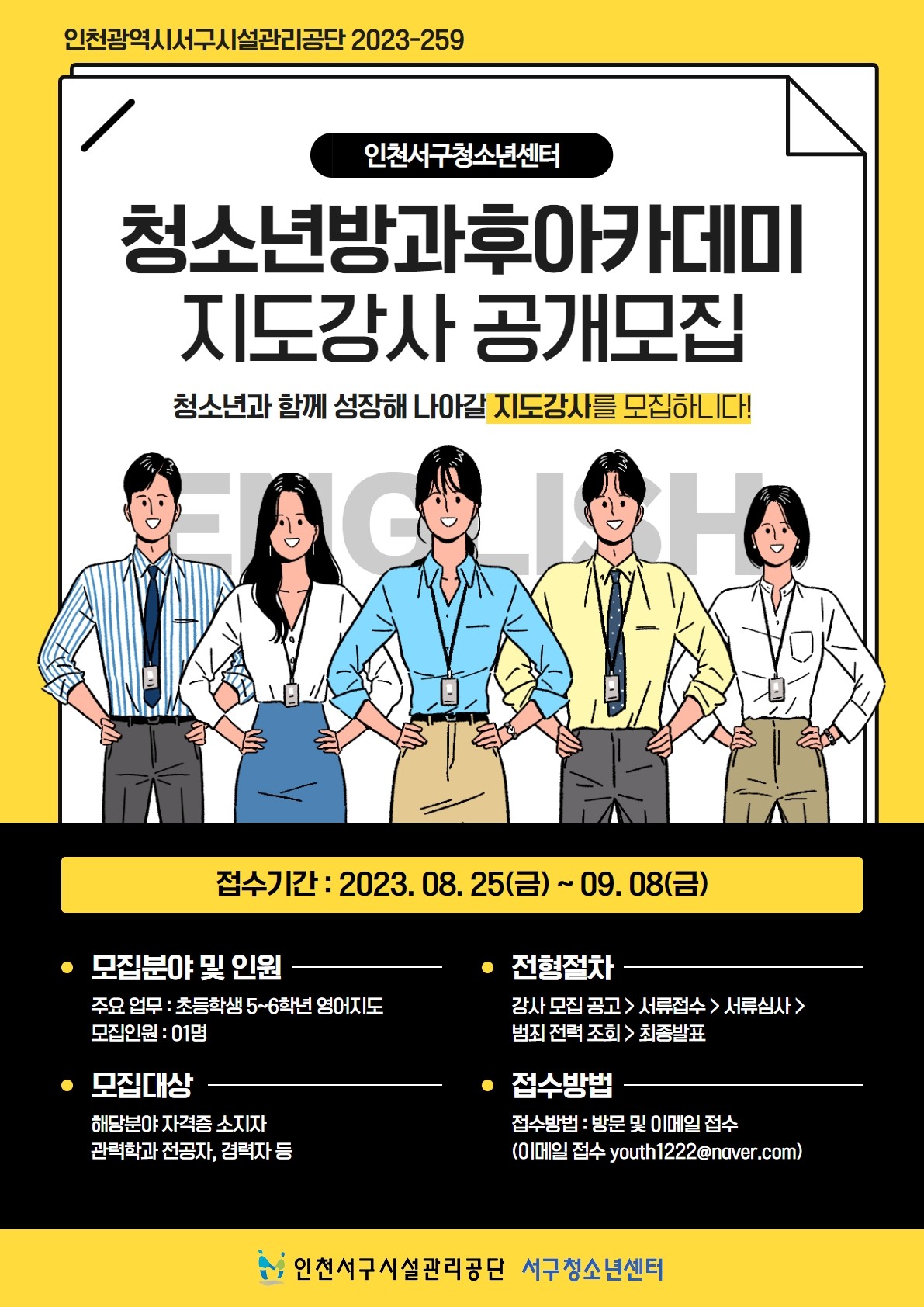 - 방문, 우편접수: 인천 서구 원창로 92(서구청소년센터), 2층 운영사무실