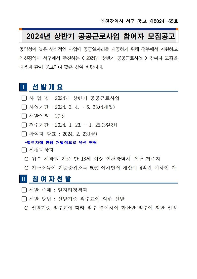 2024년 상반기 공공근로사업 참여자 모집