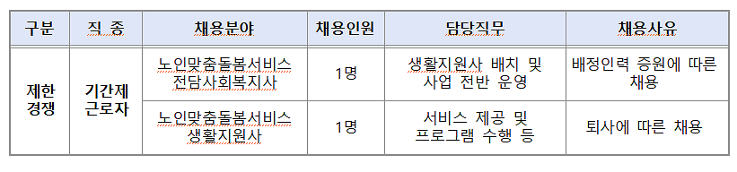 2026년 제1회 검단노인복지관 직원 제한경쟁 블라인드 채용 공고