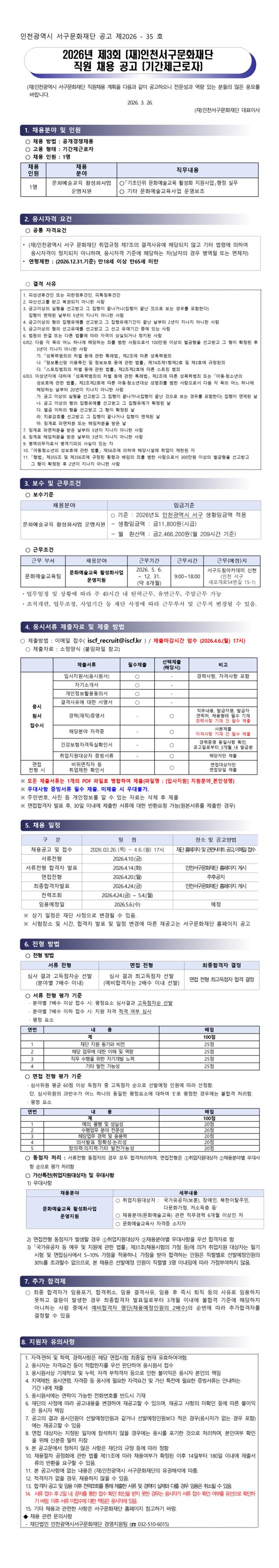 2026년 제3회 (재)인천서구문화재단 직원채용 공고(기간제근로자)사항을 안내합니다.