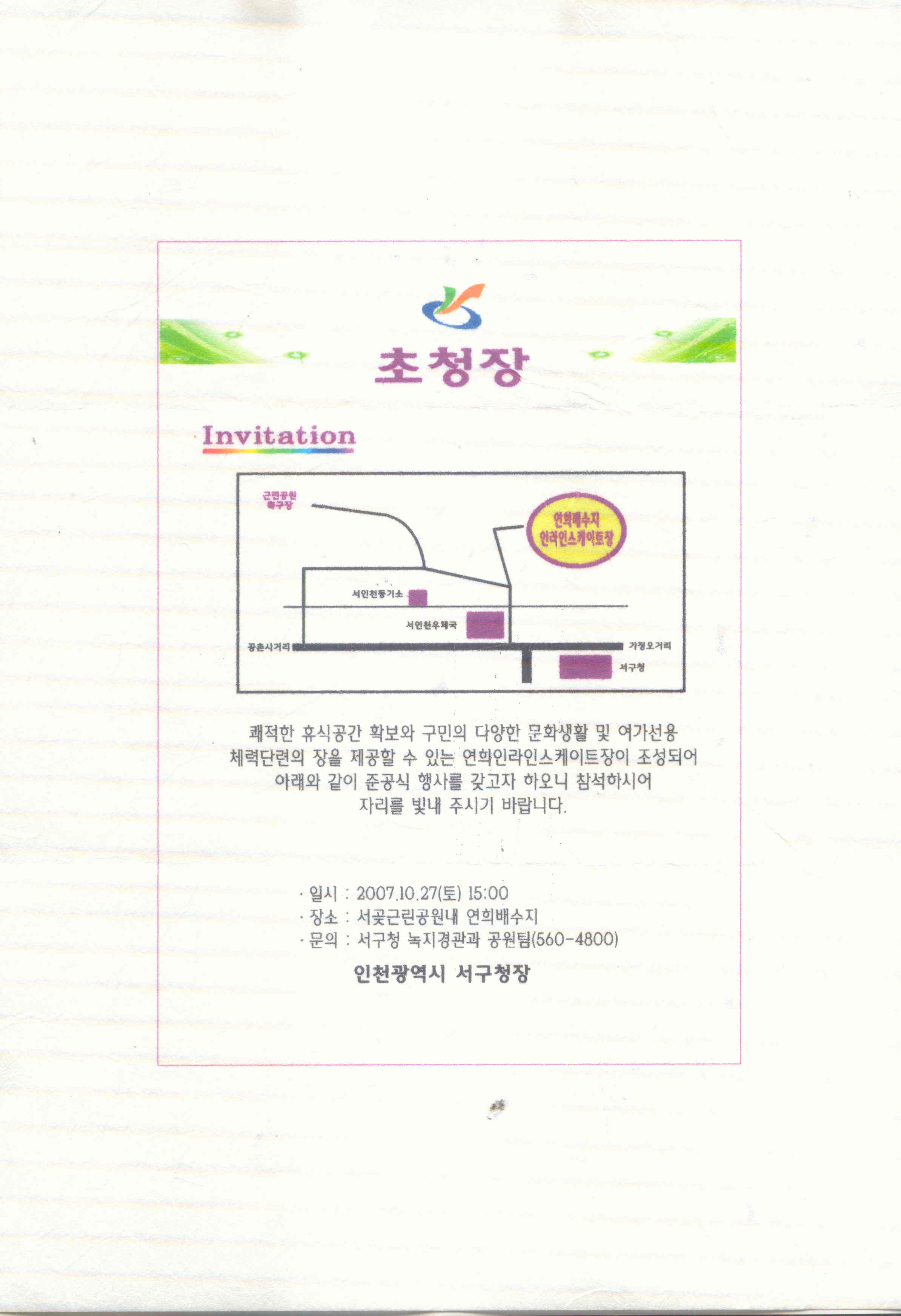 쾌적한 휴식공간 확보와 구민의 다양한 문화생활 및 체력단련의 장을 제공할 수 있는 연희인라인스케이트장이 조성되어 아래와 같이 준공식 행사를 갖고자 하오니 참석하시어 자리를 빛내주시기 바랍니다.