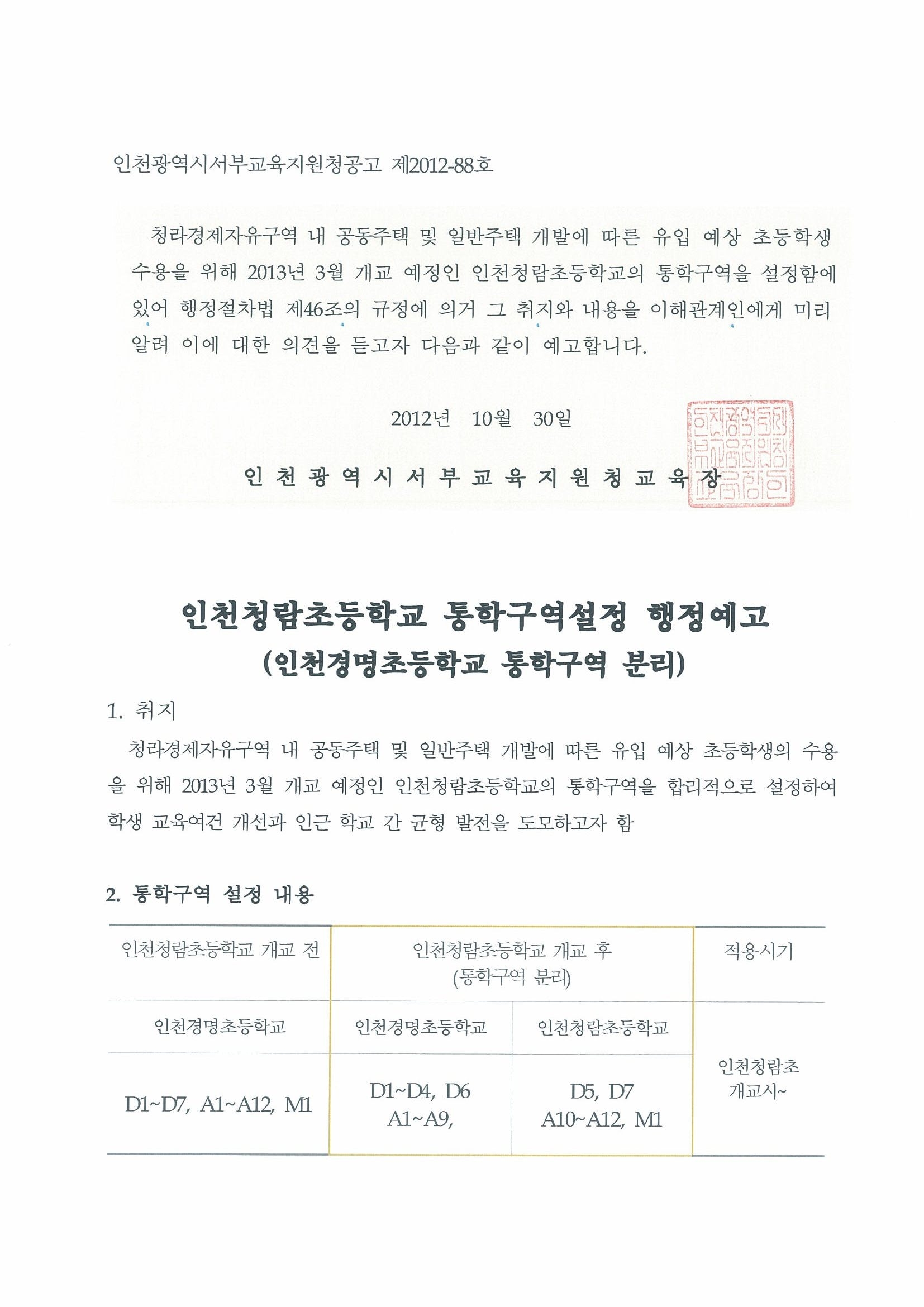 청라2동 내 청람초등학교가 2013년 3월 개교함에 따라