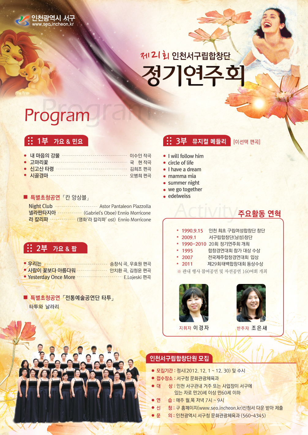 제21회 인천서구립합창단 정기연주회를 아래와 같이 개최하오니
