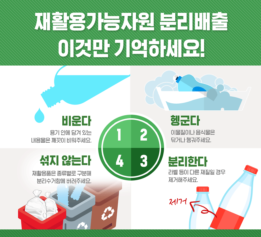 재활용 가능자원 배출 시 기억해주세요! ‘비‧헹‧분‧섞’
