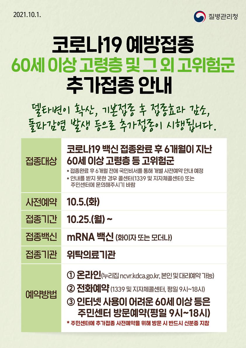 * 접종대상 : 코로나19 백신 예방접종 완료 후 6개월이 지난 60세 이상 고령층 등 고위험군