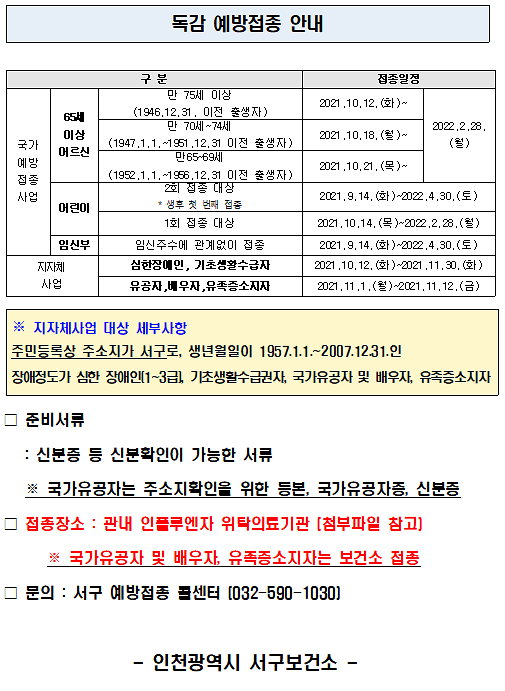 독감 예방접종 안내