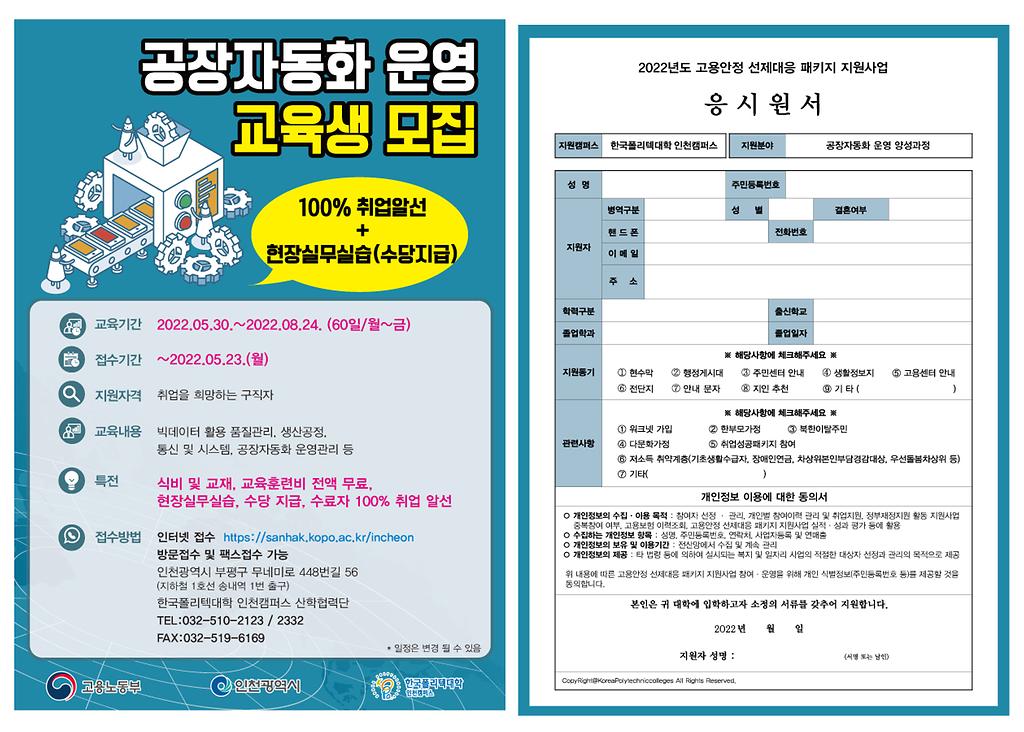 공장자동화운영 양성과정의 교육생을 아래와 같이 모집 합니다.