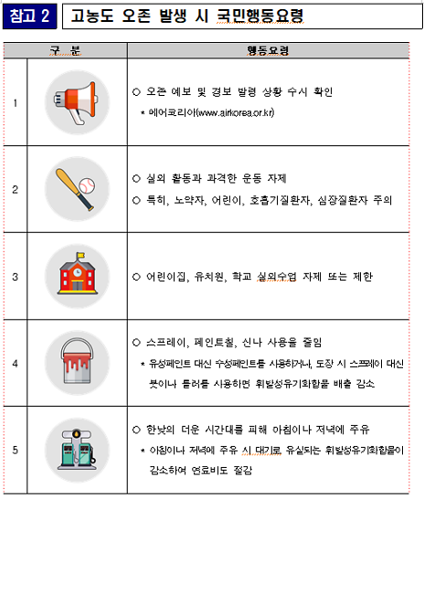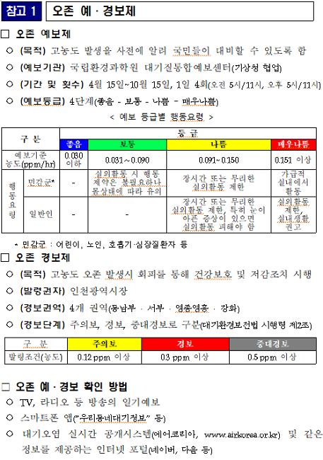 오존 취약시기(6~8월) 도래에 따라 고농도 오존 발생 관련 안내드립니다.