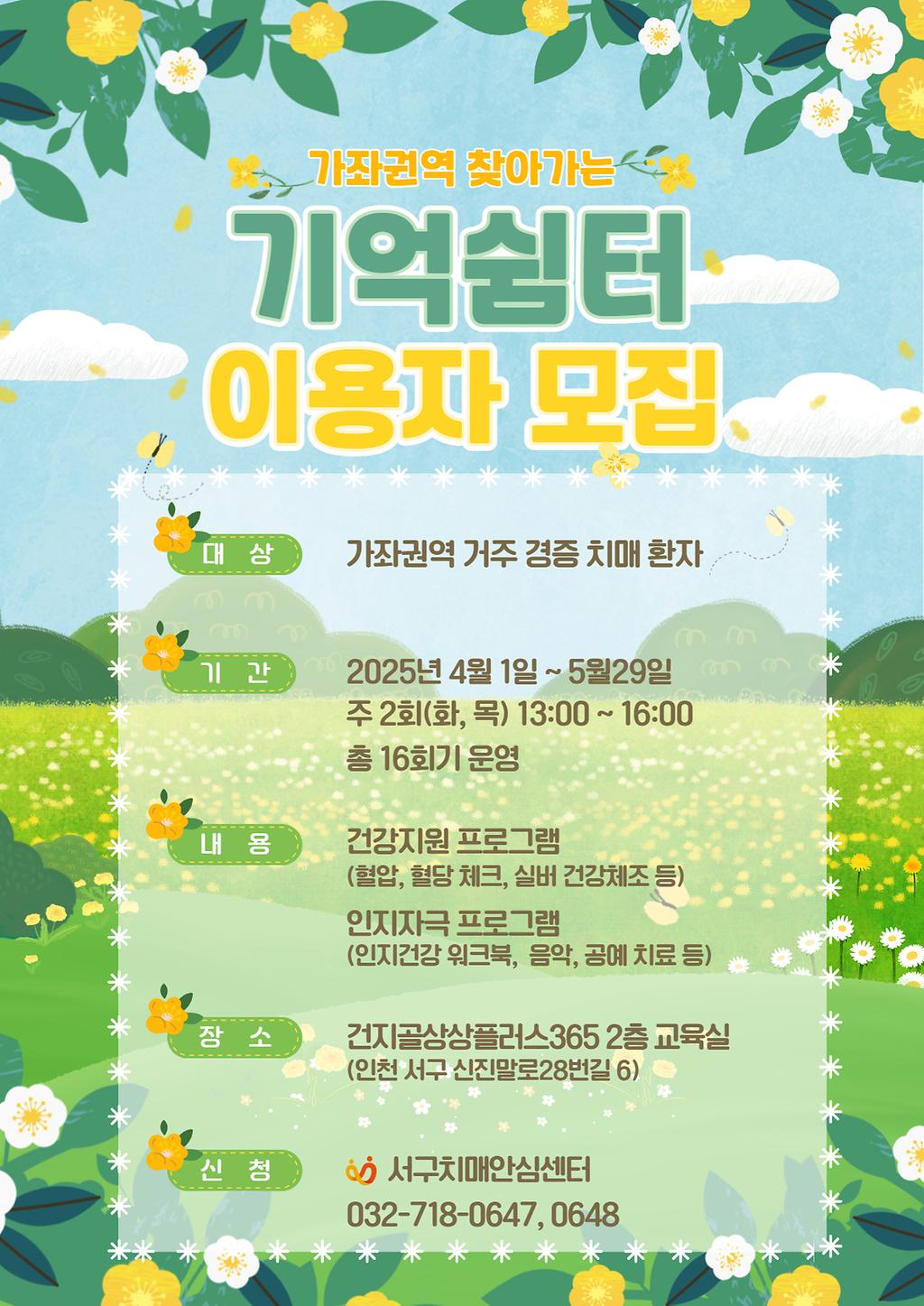 2025년 찾아가는 가좌권역 기억쉼터 이용자 모집 안내